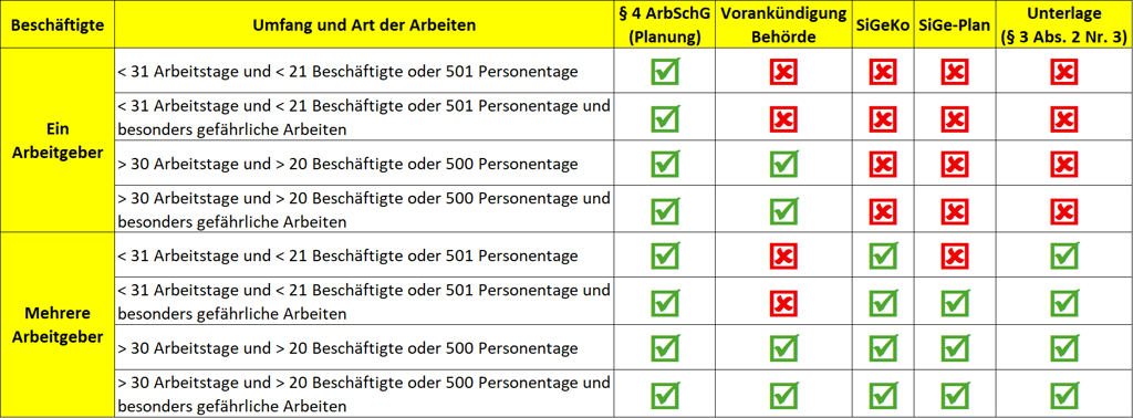 Der Bauherr hat je nach Art und Umfang des Bauvorhabens einen, oder gegebenenfalls auch mehrere SiGe-Koordinatoren für die Planung der Ausführung sowie für die Ausführung zu bestellen, wenn zu erwarten ist, dass auf der Baustelle Beschäftigte mehrerer Arbeitgeber tätig werden.
